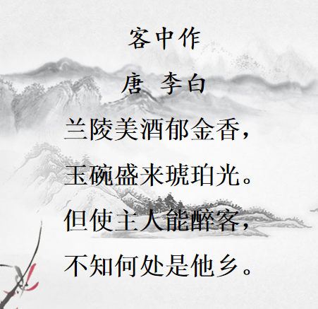合:今天我们带来了李白的两首古诗一一《客中作》和《宣州谢朓楼饯别校书叔云》,让我们跨越时间和空间,走近李白,共赏这华夏文明的瑰宝吧!
